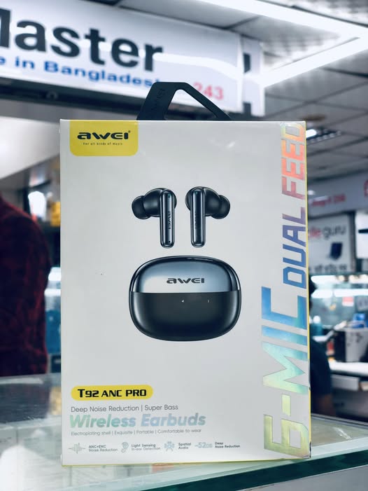 🎧 AWEI T92 ANC Pro Sound Audio Earphone – প্রিমিয়াম সাউন্ড, স্টাইলিশ ডিজাইন, আরামদায়ক অভিজ্ঞতা!