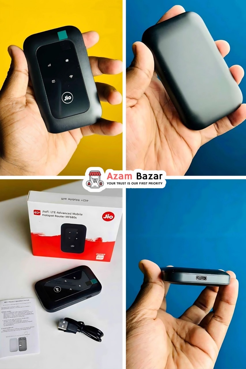 Jio MF680s 4G LTE Mobile Wi-Fi Hotspot Router হলো একটি স্মার্ট, হালকা ও শক্তিশালী ডিভাইস যা একসাথে ১০টি ডিভাইস পর্যন্ত কানেক্ট করে সুপারফাস্ট 4G স্পিড দেয়।
